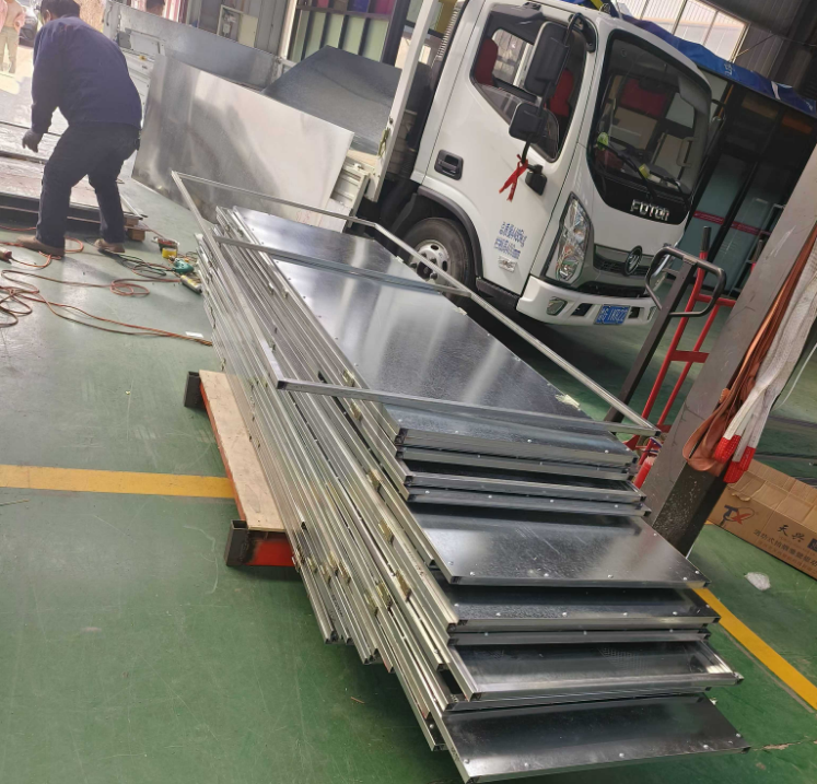 Sent to Henan Flip-down type smoke barrier《智芯品牌》发往河南的翻板式挡烟垂壁及配件, 这个东西叫翻版式挡烟垂壁。它在火灾时能自动下降,形成防烟分隔,阻挡烟气的扩散。 < 你可能会问,它的工作原理是什么?其实很简单,当感烟探测器探测到火灾信号后,会将信号传送给消防控制室。然后,消防控制室会启动相应的联动设备,包括挡烟垂壁。挡烟垂壁会自动下降到一定的高度,形成一个烟气阻断层,从而阻止烟气继续扩散。